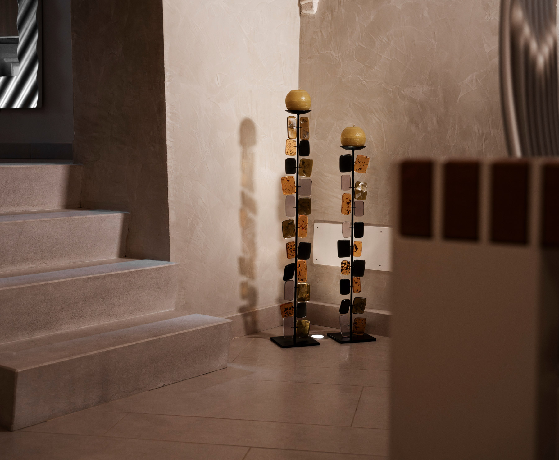 La nuova configurazione degli spazi ruota attorno a una scala in acciaio corten, elemento scultoreo e fulcro visivo dell’intervento. Le superfici materiche, i contrasti tra antico e nuovo, e l’uso sapiente della luce naturale danno forma a un ambiente ricco di suggestioni. Gli arredi su misura, come il tavolo in legno e metallo o i dettagli dei bagni, completano l’intervento, dimostrando una cura progettuale che tocca ogni dettaglio. Il risultato è una casa che racconta una rinascita: quella di un luogo ritrovato, dove il passato è diventato fondamento per una nuova bellezza.