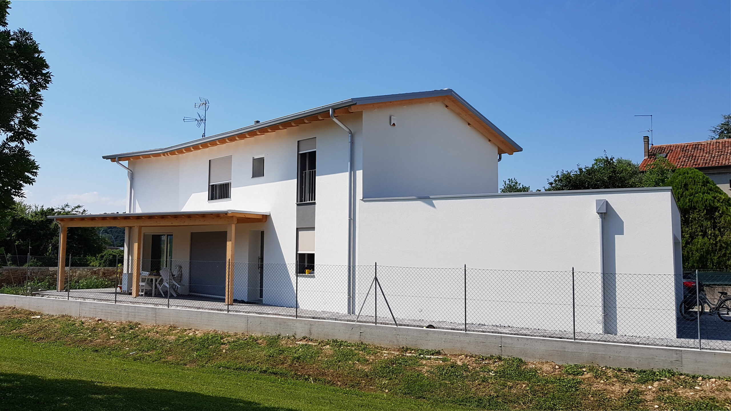 L’obiettivo del progetto era creare una residenza che si adattasse perfettamente a un lotto irregolare, trasformando le geometrie del terreno in opportunità progettuali per l’abitare contemporaneo. La villa doveva offrire un comfort elevato, sfruttando la luce naturale e la ventilazione per migliorare la qualità degli ambienti interni, pur mantenendo un’estetica semplice e armoniosa. Si mirava inoltre a realizzare una casa a bassissimo consumo energetico, capace di garantire benessere termico e ambientale durante tutto l’anno, dimostrando come l’architettura passiva possa essere flessibile e integrarsi con contesti complessi.